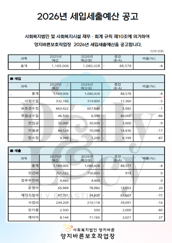 2026년 세입세출예산 공고