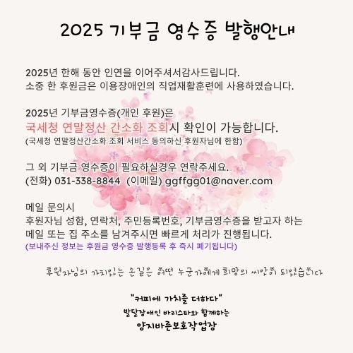 2025년 기부금 영수증 발행 안내